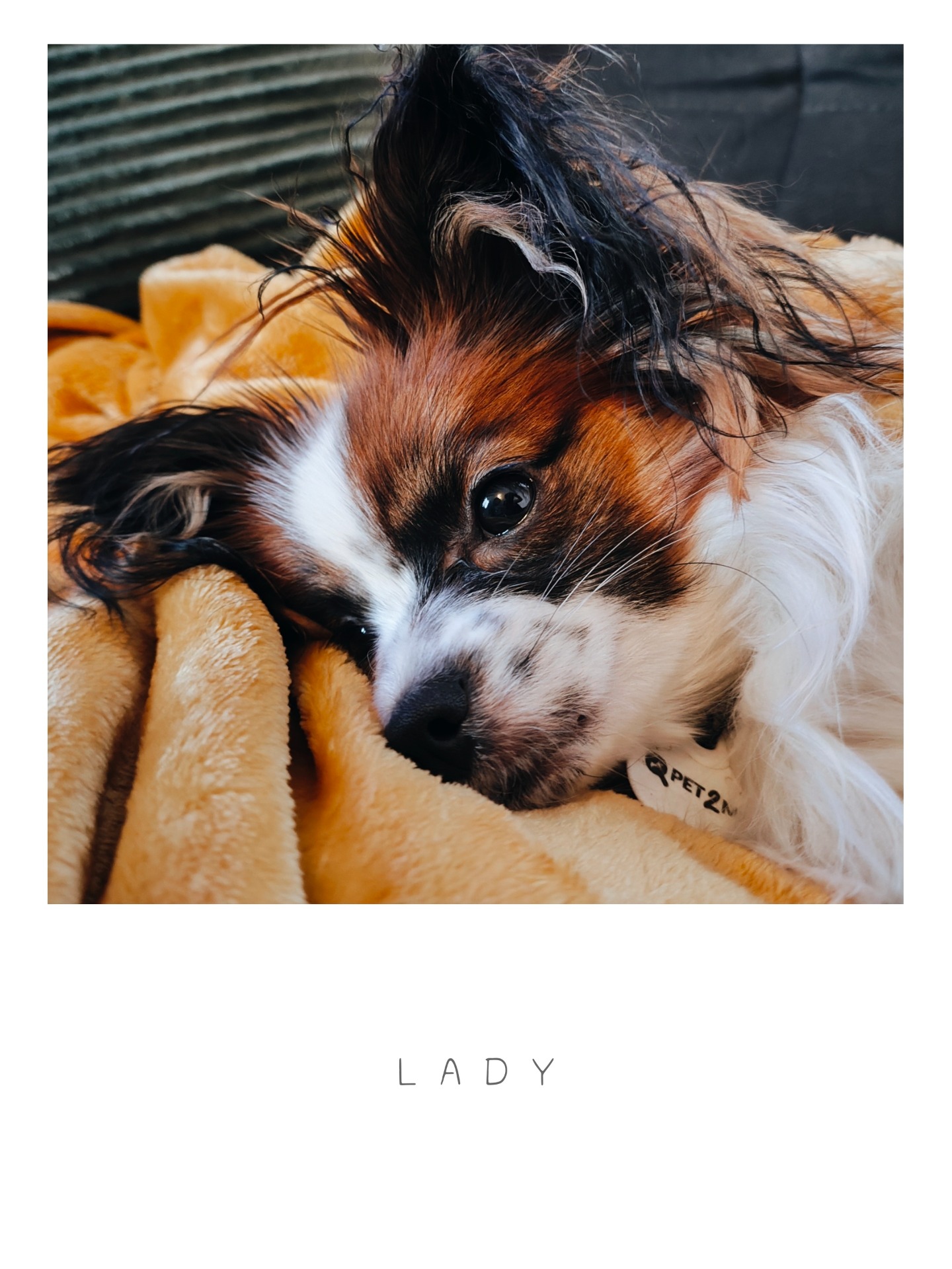 Dvouletá papillonka s motýlími oušky, nekonečnou chutí se mazlit a hlavou plnou radosti. Miluju lidi, zvířata, výlety, pelíšky, pohodu… a hlavně, když je kolem mě hodně lásky (a pamlsků).